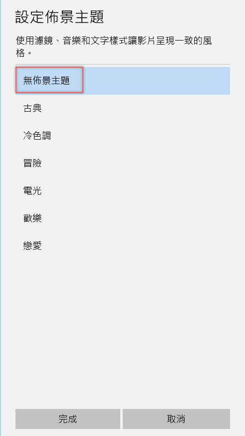 佈景主題也改成「無」,畢竟你已經做了自己的調整,就不用再套用系統幫你配的主題了。