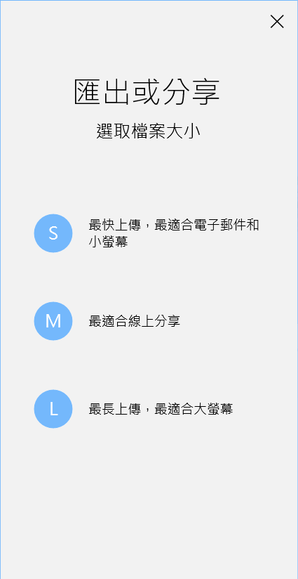 完成後就選擇匯出或分享吧,提供適合的檔案大小可參考。