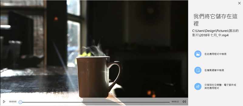 儲存完畢後想要再次檢視或傳到其他地方都很容易,真的相當適合影音剪輯初學者啊。