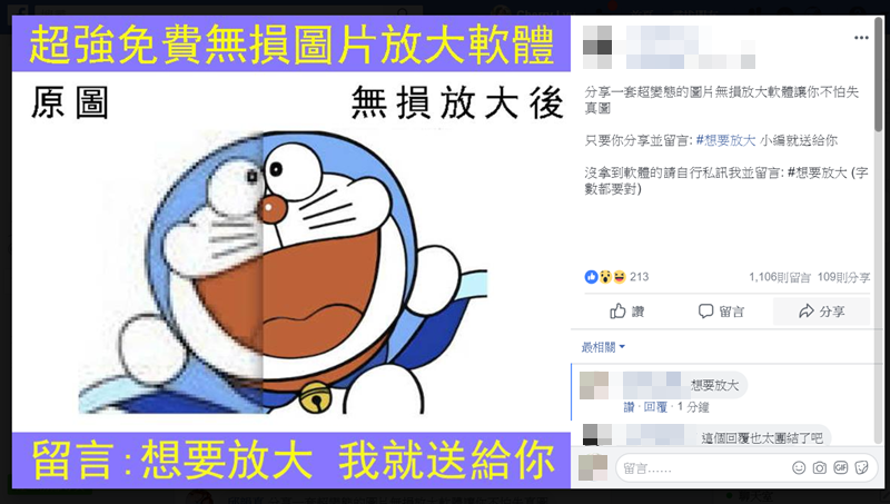 也有可能是網站連結,順便衝一下點閱率,這種阿湯是覺得偶爾用還 OK,不過以留言者(無論粉絲或非粉絲)角度,像這種結合網站的粉專,很多東西你其實可以自己去網站找,不一定要留下回覆的痕跡,也能找到需要的軟體或其他東西。