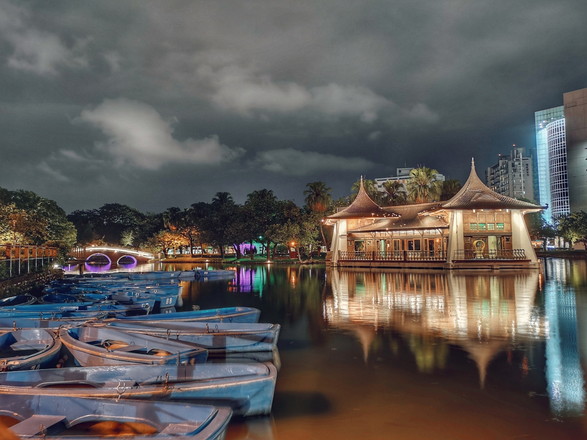 而在台中公園裡,攝影愛好者最愛拍攝的就是這位於湖中央的湖心亭,以及一旁的小船,不論是白天或夜晚拍攝都非常的漂亮。