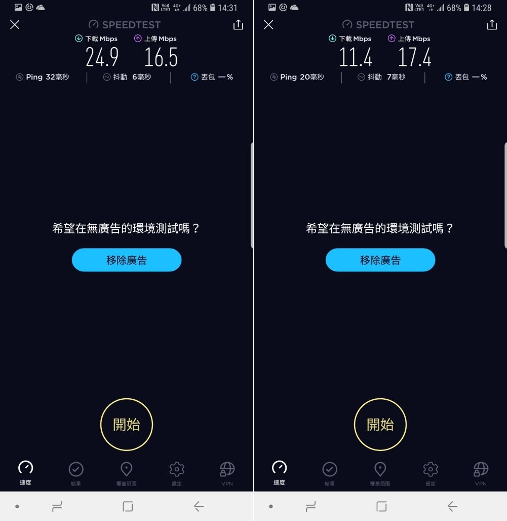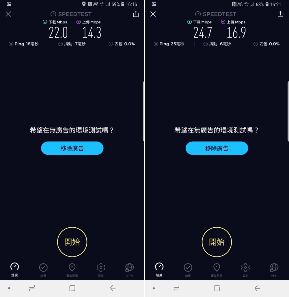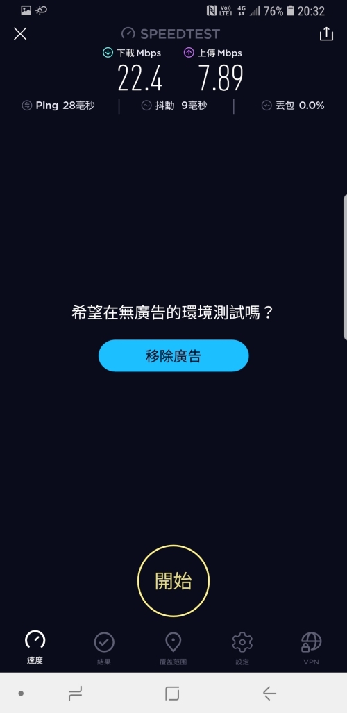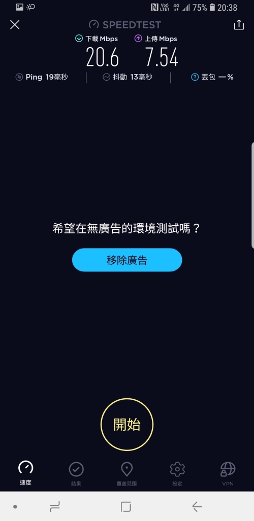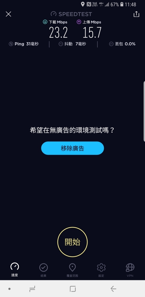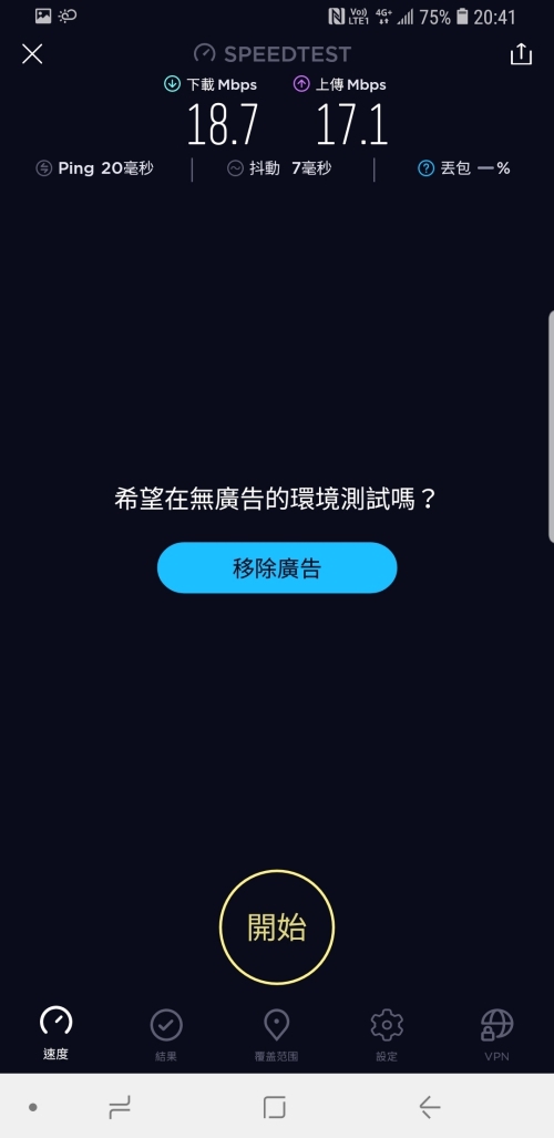 經過實測,下載平均速度有 20Mbps 以上,上傳則有 15Mbps 以上,而有一張速度特別慢的同樣是在地下停車場 B1 所測得的結果。