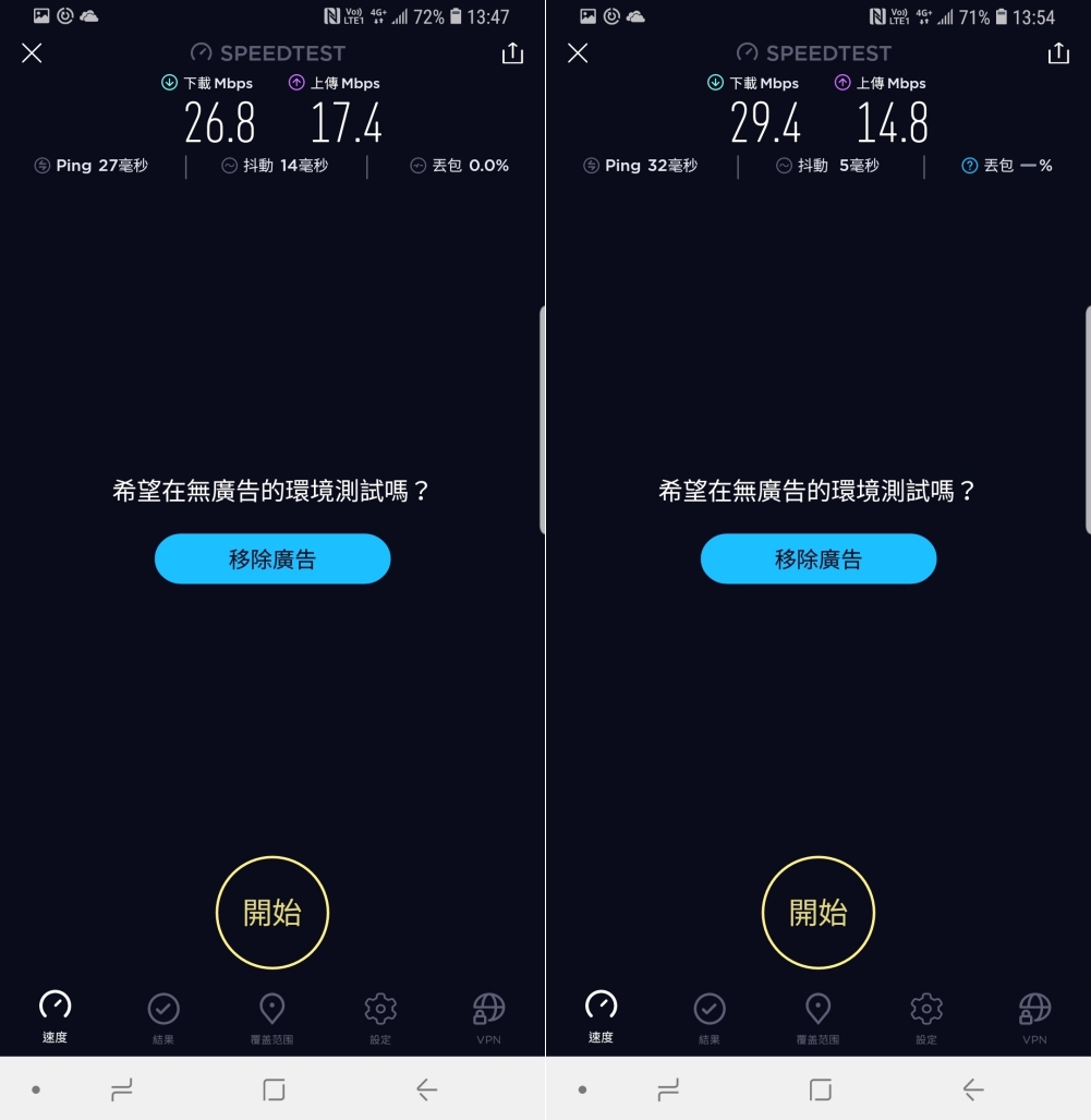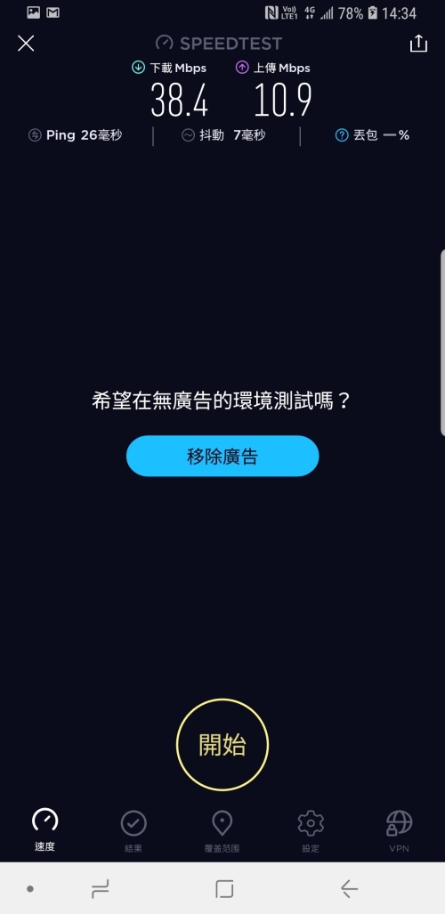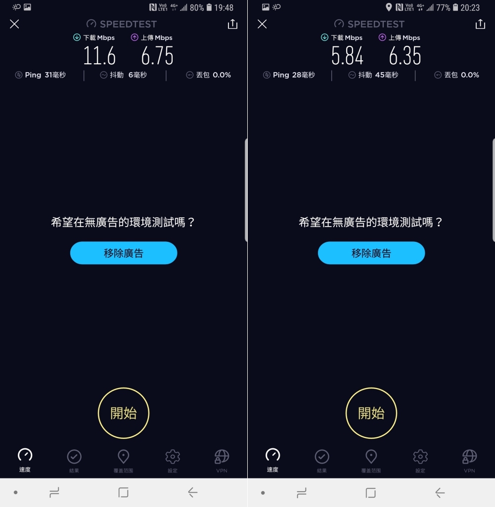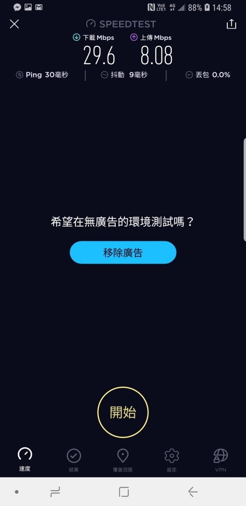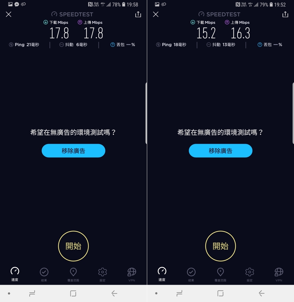 經過實測,下載平均速度有 20Mbps 以上,上傳則有 15Mbps 以上,而有一張速度特別慢的同樣是在地下停車場 B1 所測得的結果。
