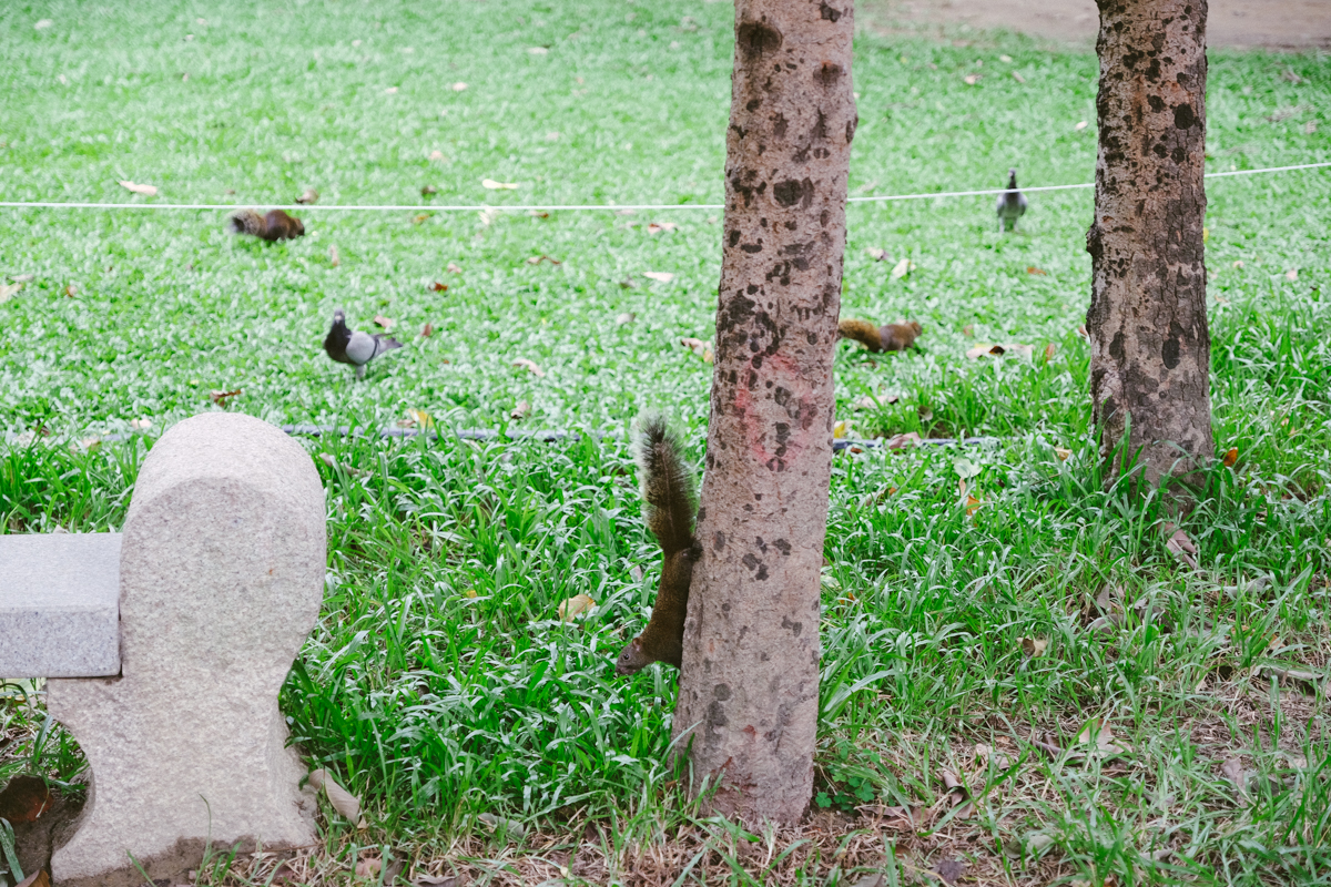 原來阿湯剛看到的是松鼠,原以為只是剛好出現一隻而已,沒想到在公園內有一區特別圍起來的生態區,不僅有很多鴿子,也有不少松鼠,可以非常靠近的觀賞,當然大家不要越線嚇到松鼠們哦。