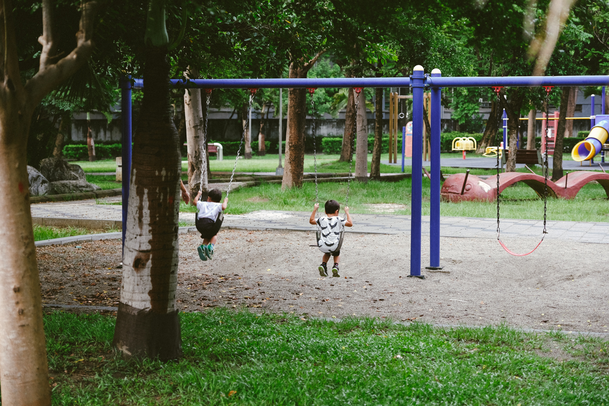 這裡也是阿湯造訪的五個公園中,唯一有看到盪秋千的設備啊,大多都是因為擔心安全問題所以沒有這樣的設備,少見的盪秋千也讓童心未泯的阿湯去晃了幾下,但因為屁股太大所以搖幾下就走了.....
