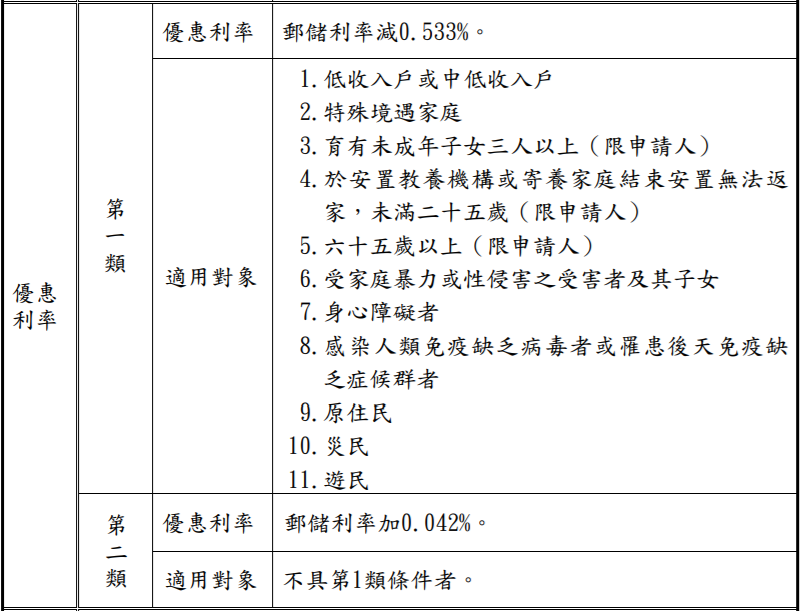 補貼項目:租金補貼、自購住宅貸款利息補貼、修繕住宅貸款利息補貼