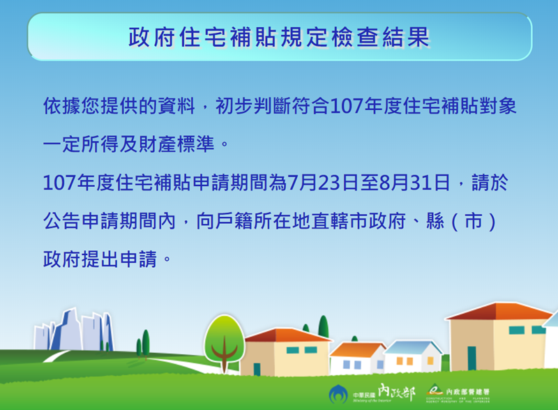 政府住宅補貼資格檢視