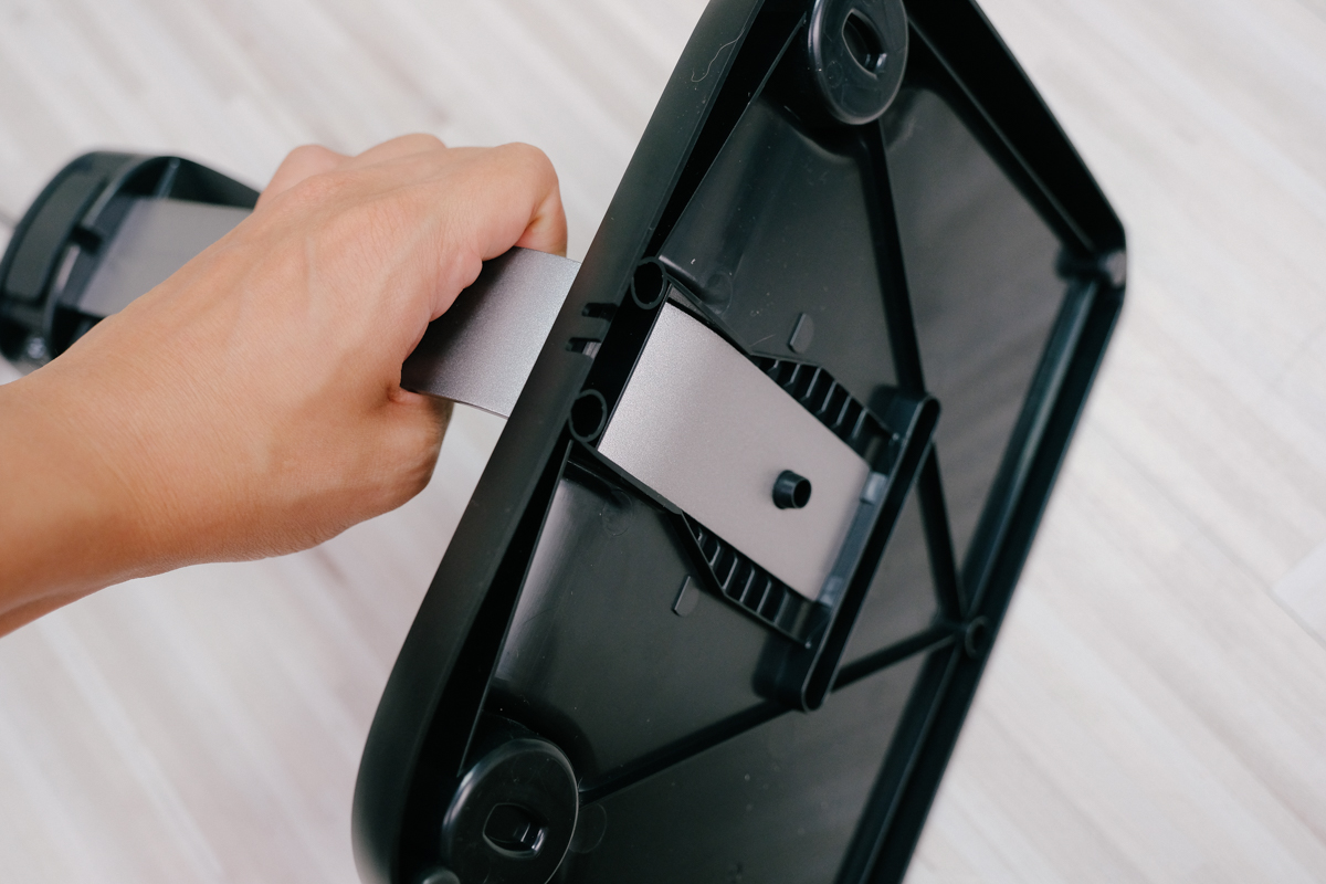 只要將主柱從開孔穿過去就能夠卡住,完全不需要用到半個螺絲或工具,拆卸同樣也只要稍微扳一下就可以取下,這是在一般有立式的充電座看不到的便利設計。