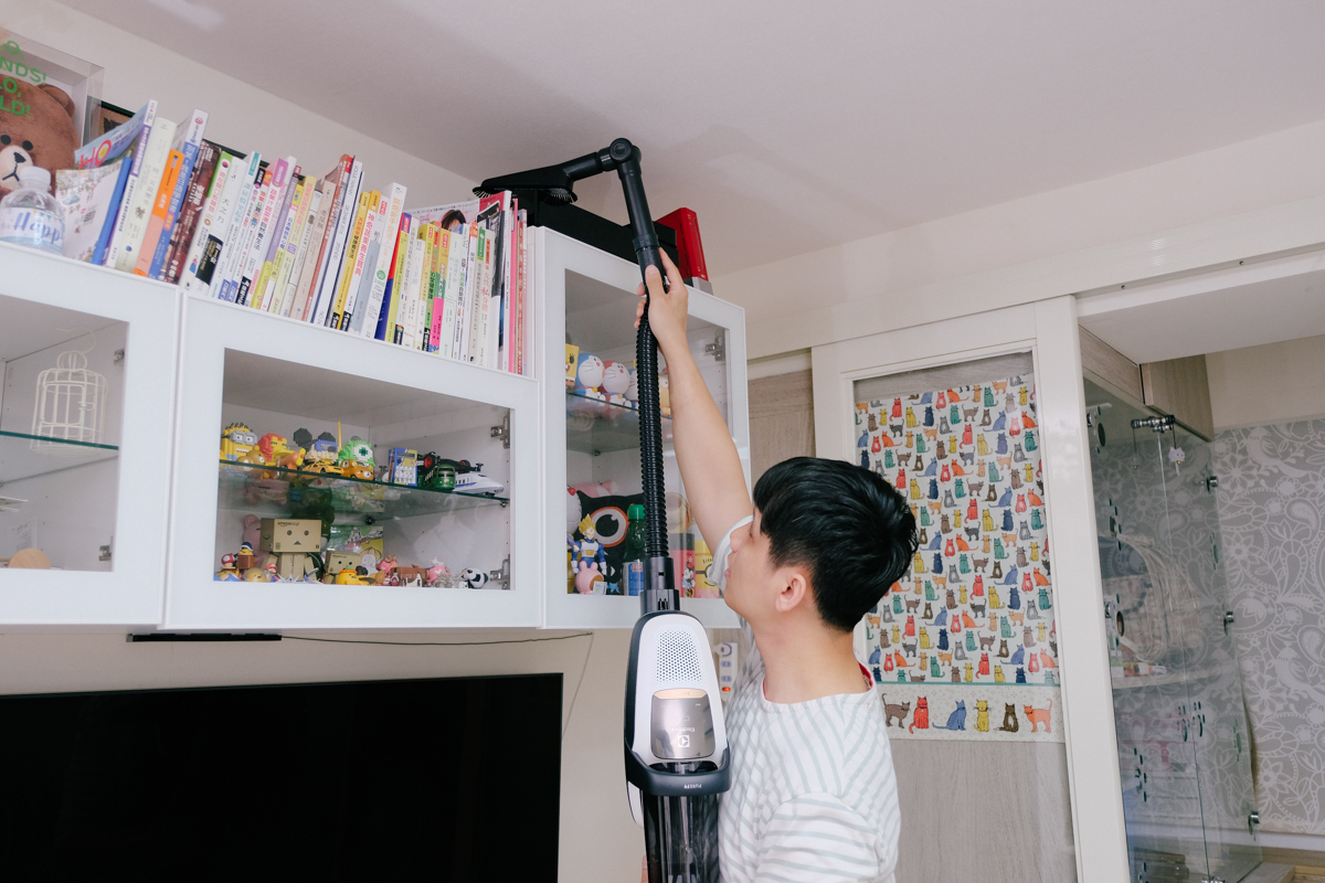 例如搭配轉角延伸管以及三合一吸頭,就可以輕鬆的打掃狹窄的高處。