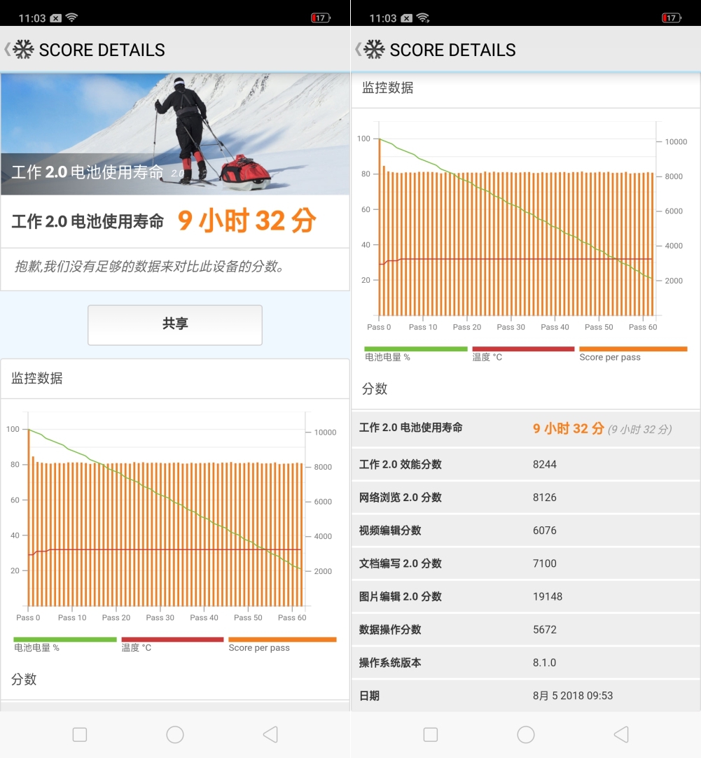 PCMark 續航測試雖然僅獲得 9 小時 32 分,不過阿湯實際的帶出去使用二天,使用的感受應該是大於這個測試續航的,因此大家可以參考就好。