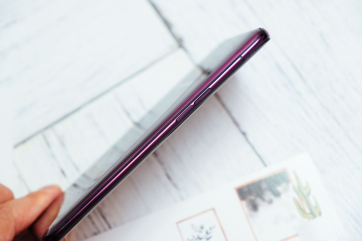 右側為電源鍵,手機最厚處為 9.6mm,但因為邊緣內縮的關係,握起來不會覺得有那麼厚。