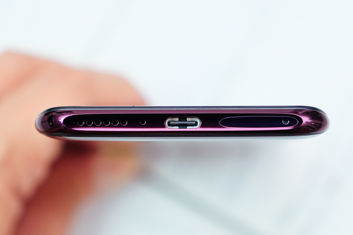 在下方的月牙彎裡則是包括喇叭,降噪麥克風、USB Type-C 連接埠以及 SIM 卡槽。