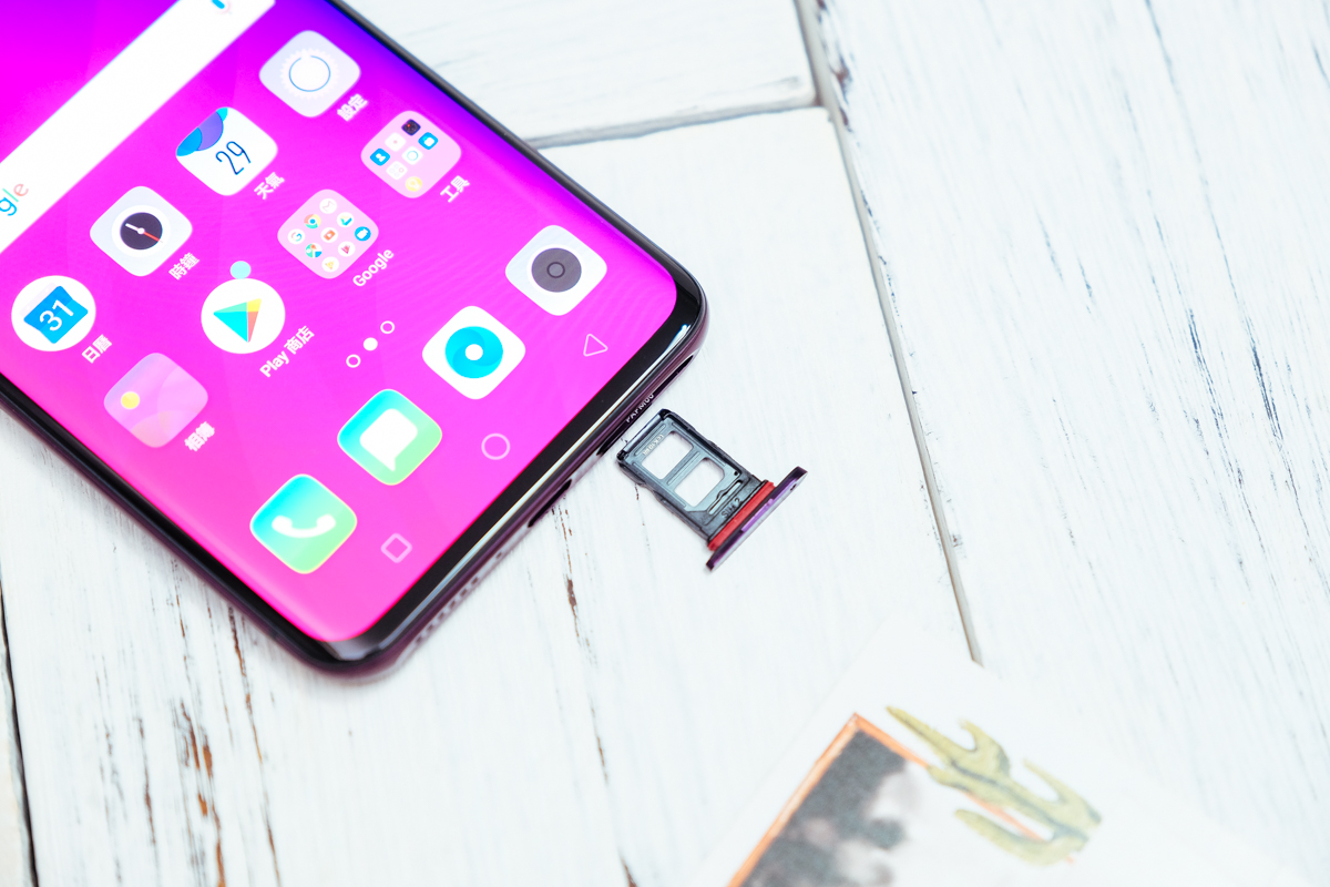 一開始抽出來時,阿湯錯以為是只支援單卡,仔細一看,才發現 OPPO Find X 的 SIM 卡槽是設計為正反二面,並支援 4G 雙卡雙待。