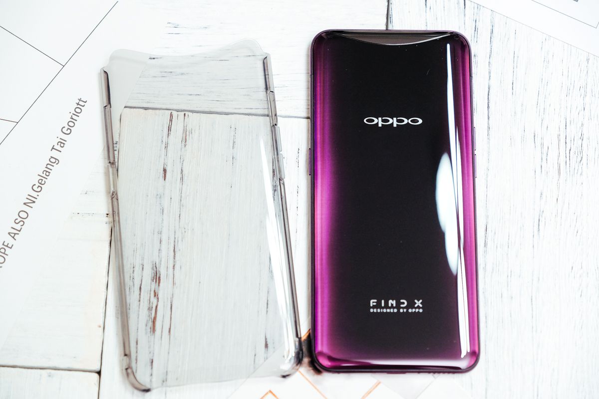 因此這雙軌潛望升降結構的關係,保護殻的部份當然也需要挑選一下,原廠標配中就有附帶一個透明帶點灰色的保護殻可以使用,阿湯覺得好像不太需要額外再買了,透明才能顯現出 OPPO Find X 背面這漸層背蓋的美啊。