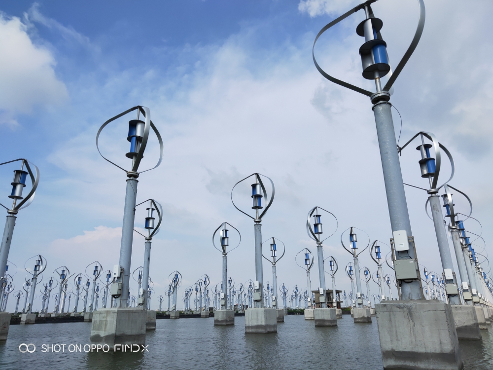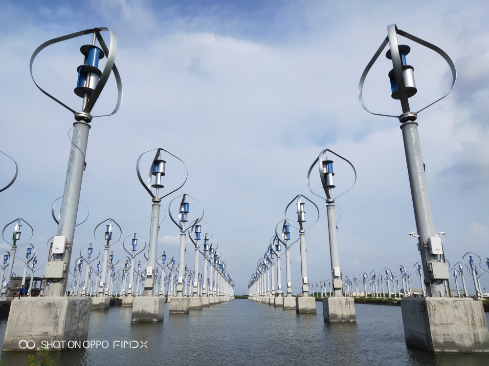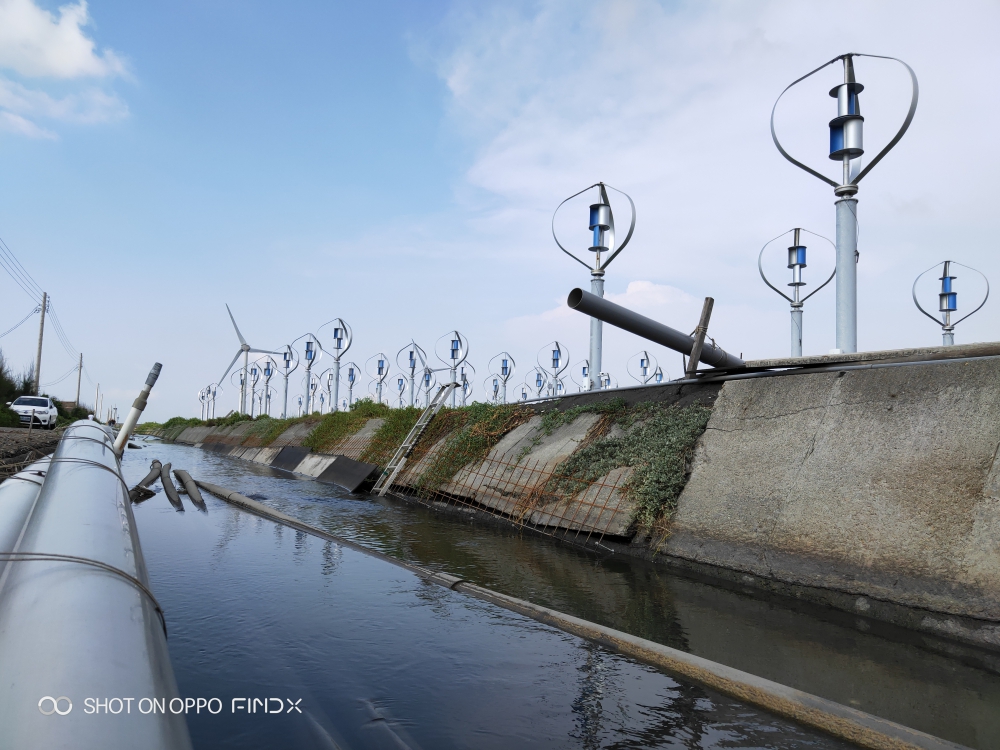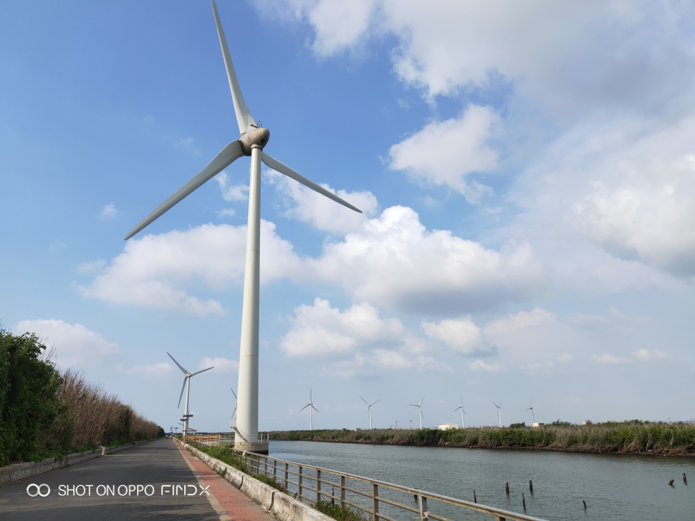 王功漁港的附近有個風力發力區是有別於以外我們在海邊看到的那種長的像風車很大的一根,一整區應該有上百根?(沒數),都長像這樣,排列整齊且都佇立於水中。