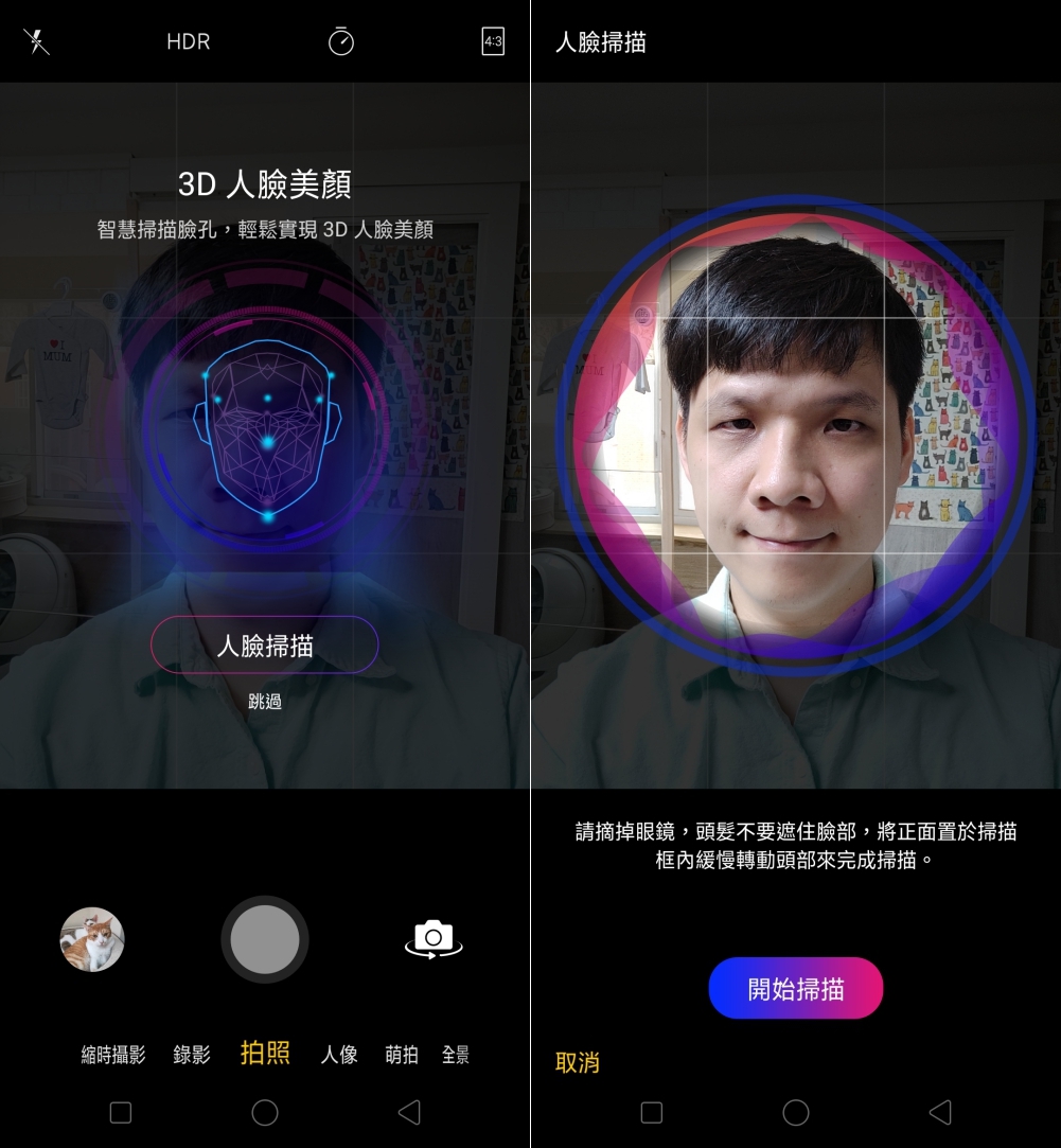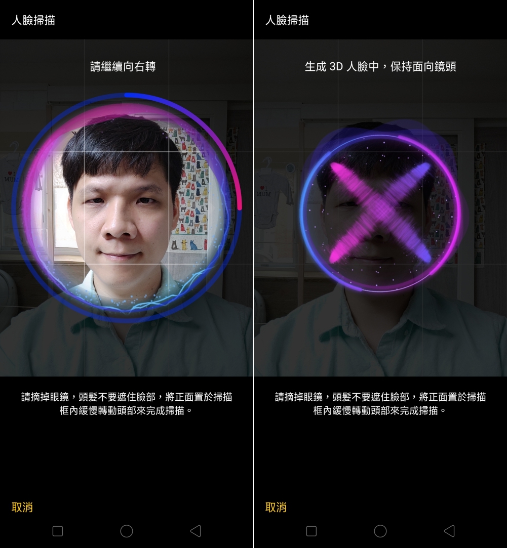 掃描時會請你左右轉跟往上看,以獲得 3D 的人臉結構。