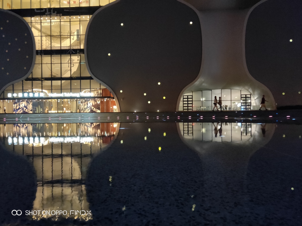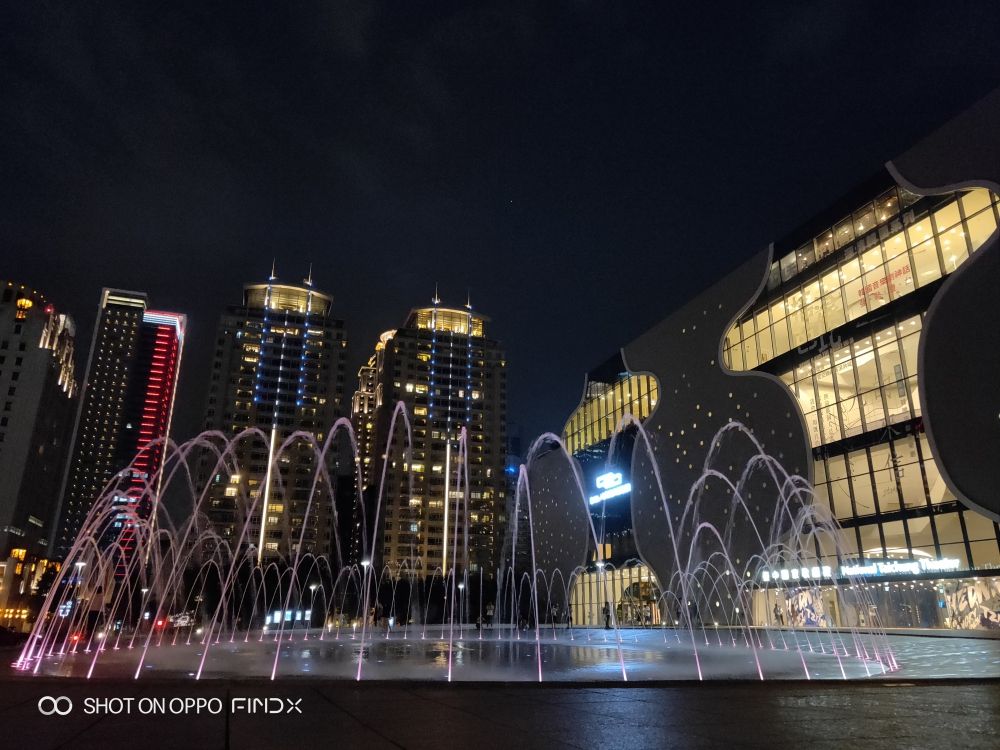 在歌劇院的廣場有個噴水池,假日的話其實很多小朋友會在噴水池裡跑來跑去的,噴水池會循序漸進的加水壓,愈噴愈高,晚上搭配歌劇院跟一旁的大樓一起入鏡,非常的好看。