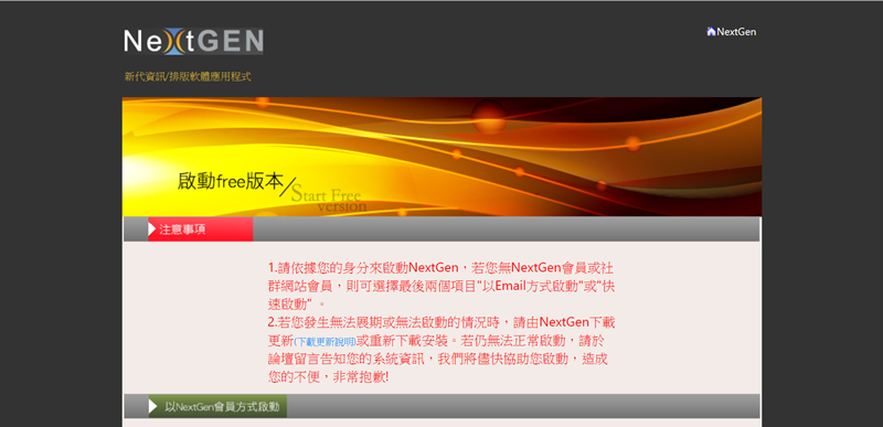 Flip PDF - 跨平台 PDF 轉電子書工具,多媒體編輯功能,輕鬆製作可翻頁的互動電子書」,有讀者問阿湯除了用現成的 PDF 檔來轉換之外,如果要自己從頭設計,除了付費的專業軟體,有沒有其他類似的免費軟體,阿湯找到了「NextGen」這款排版工具,除了可以編輯電子書,也能製作名片、DM、卡片等,可說是平民版的 Indesign,提供中文版並免費試用,有需求可以用用看。