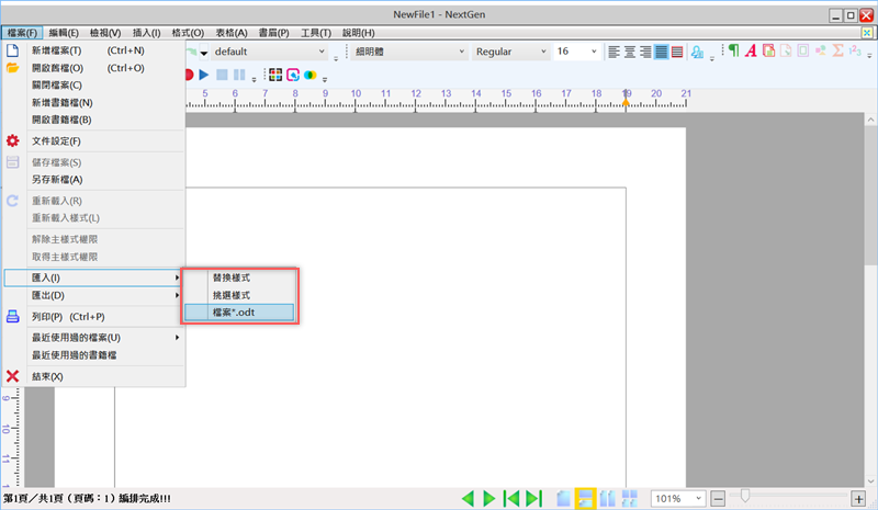 開啟後可從頭開始編輯,或直接匯入檔案,一定要 .odt 格式。