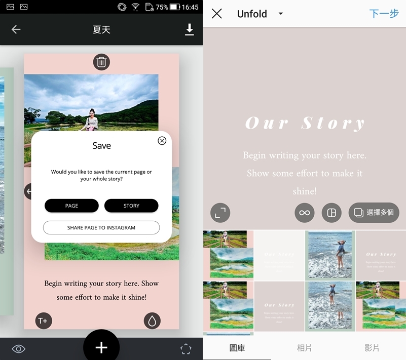 最後可儲存單張、整本或直接分享到 IG,不論是單篇 PO文或限時動態都很適合,快來上傳作品,療癒大家的心吧。