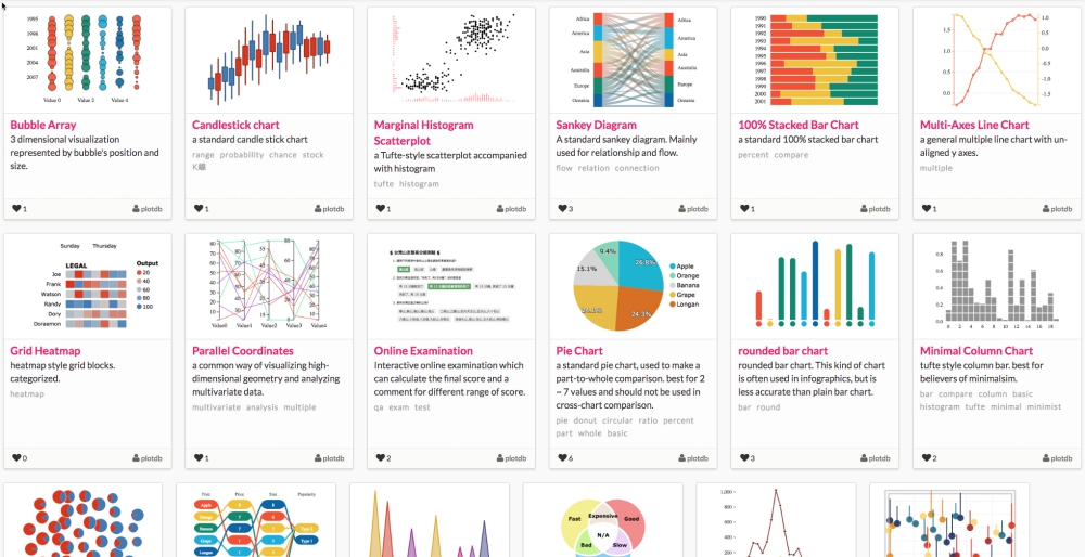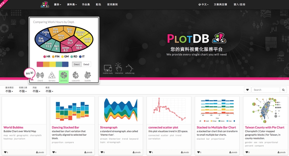 Infogram 都各有優勢,但都是來自國外所以不支援中文字型,「PlotDB」這個台灣團隊開發的網站收集上百種動態圖表,提供平易近人的繁中介面,可選擇喜歡的樣式直接套用數據,並加以編輯後匯出圖檔,一起來看看吧。
