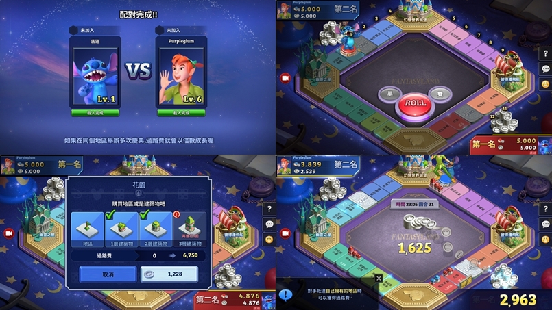 跟大富翁類似,但地圖更簡單就是繞一圈,以迪士尼人物為主,畫面精緻遊戲快速,也能練等升級,關卡與地圖樣式眾多,一個人沒事也可以玩。