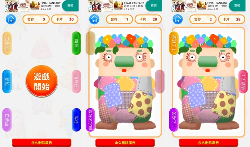 很簡單的遊戲,看到人物後自己取個名字,再度出現後看誰反應快先叫出名字就贏了,也算是考驗記憶力,阿湯覺得蠻適合跟國小以下的小朋友一起玩的。