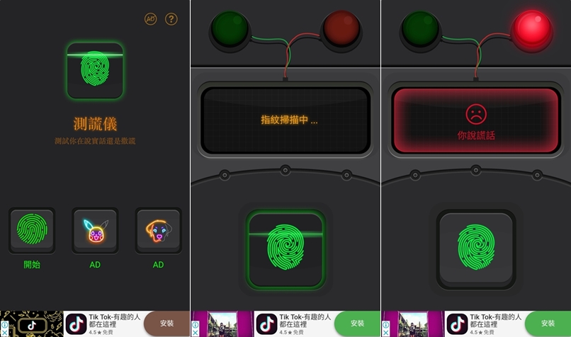 其實根本是惡作劇遊戲,手指放上去後說話,檢驗心跳並分析結果,阿湯什麼都沒說也能測出說實話還是謊話,有點隨機的感覺。