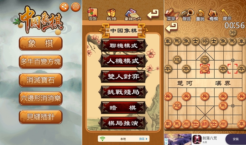 接下來是各種棋類,類似的 APP 蠻多的,像這款還有百變方塊、消滅寶石、六邊形消消樂等,象棋部分也有暗棋、挑戰殘局等不同玩法,可選擇線上或離線進行。