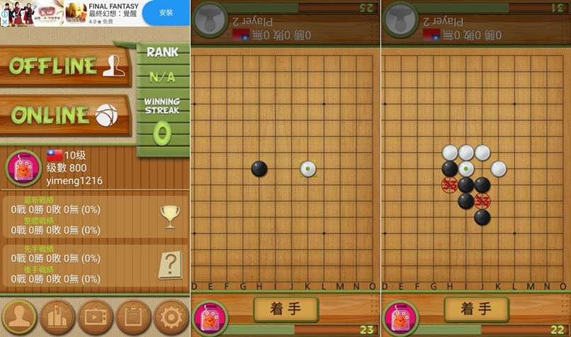 五子棋、圍棋之類的黑白棋都是只能兩人,當然你也可以跟電腦玩或分飾二角,棋類的優點就是隨時可開場或結束,簡單方便適合打發時間。