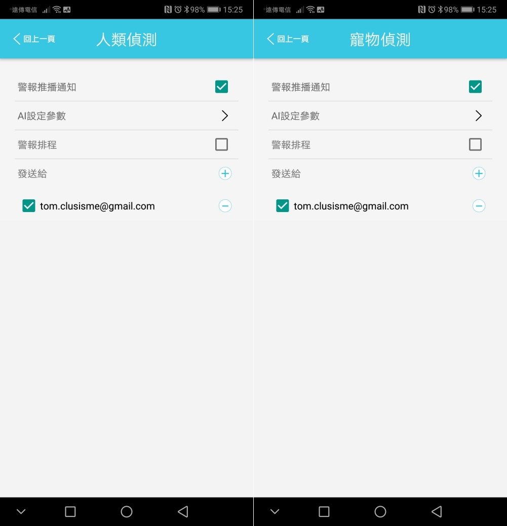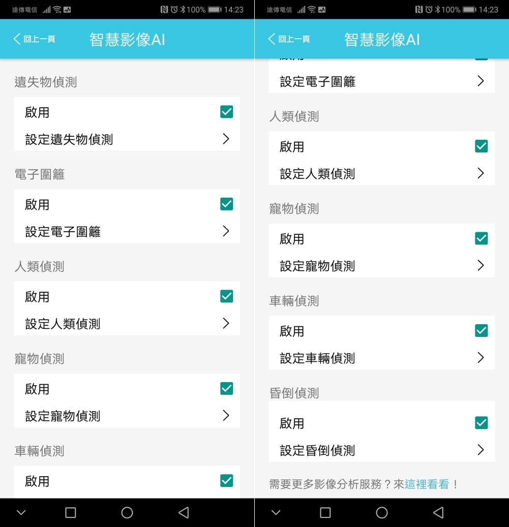 點擊進入智慧影像 AI 就可以針對各項偵測系統進行設定,阿湯這邊也用 APP 來進行示範(也可以從網頁上進行呦)。