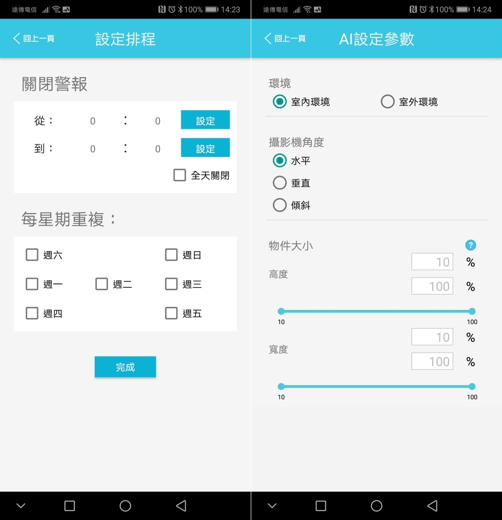 你也可以針對需求的時間進行設定,並針對環境、攝影機角度進行選擇,可以讓偵測更加的精準。