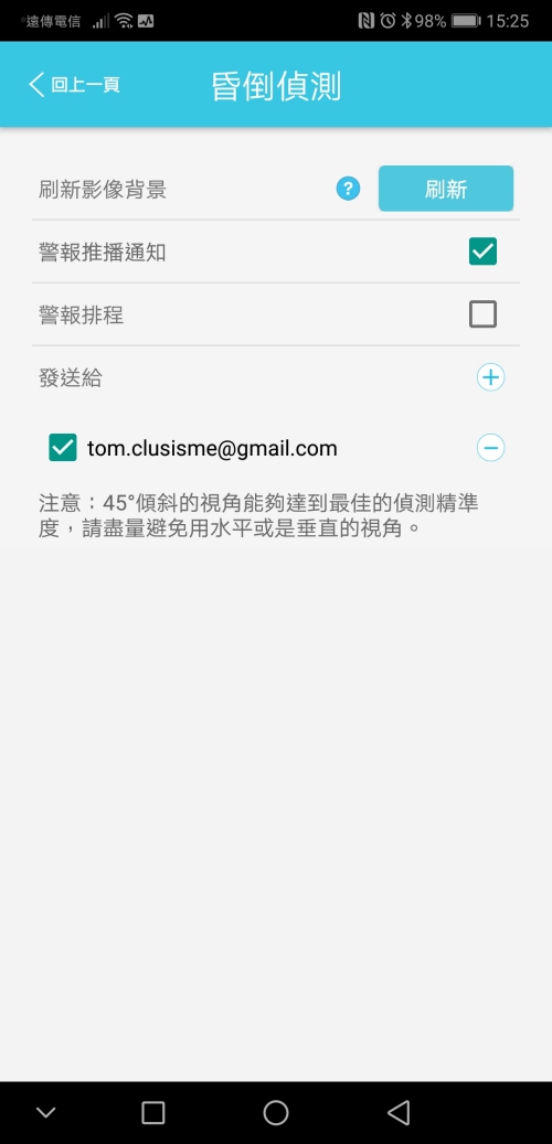 當然阿湯也自己裝死實際測試看看,原則上這個功能是在畫面中,如果有人跌倒或昏倒後在短時間內沒有爬起來的話,就會觸發事件並通知。