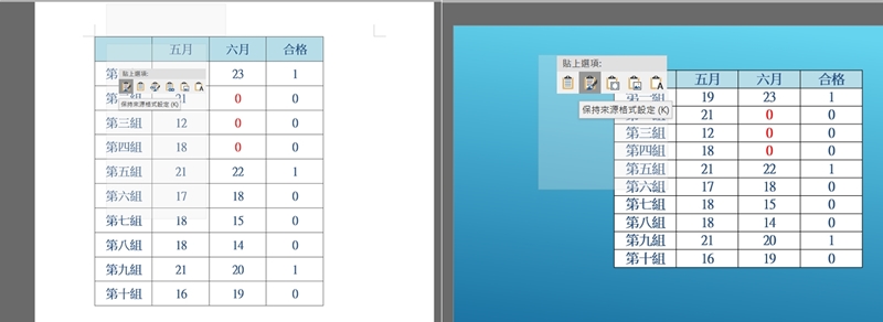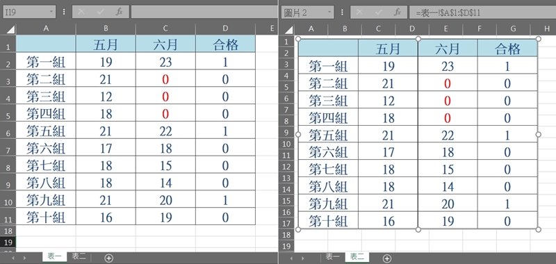 原始的表格有任何更改,副本也會同時變更,阿湯就將中間的資料改成三個 0 再換成紅色,另一邊也是立刻同步。