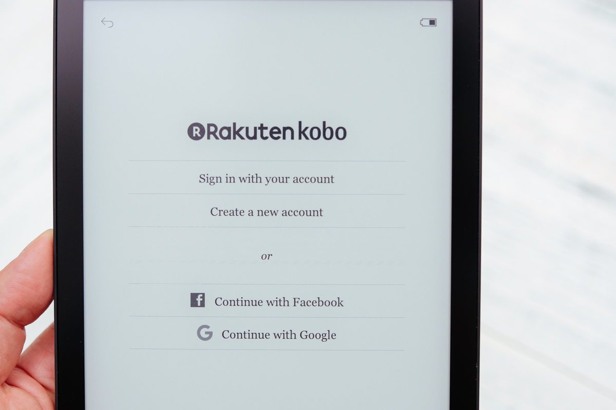 樂天 kobo 電子書平台創建好帳號比較方便,Kobo aura ONE 上也支援 Facebook 或 Google 帳號登入。