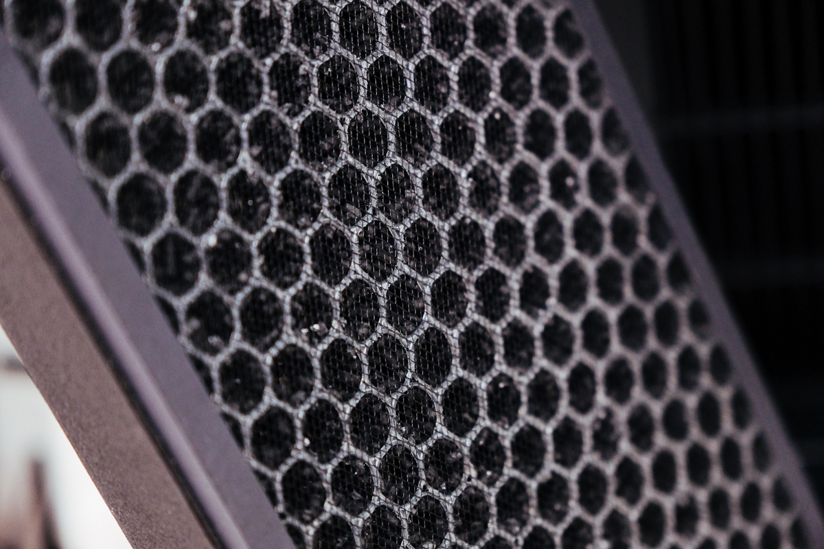 註:高密度活性碳,提升甲醛與異味淨化的效果,活性碳顆粒均勻分布在蜂窩狀濾網上,減少封阻讓淨化通暢無阻