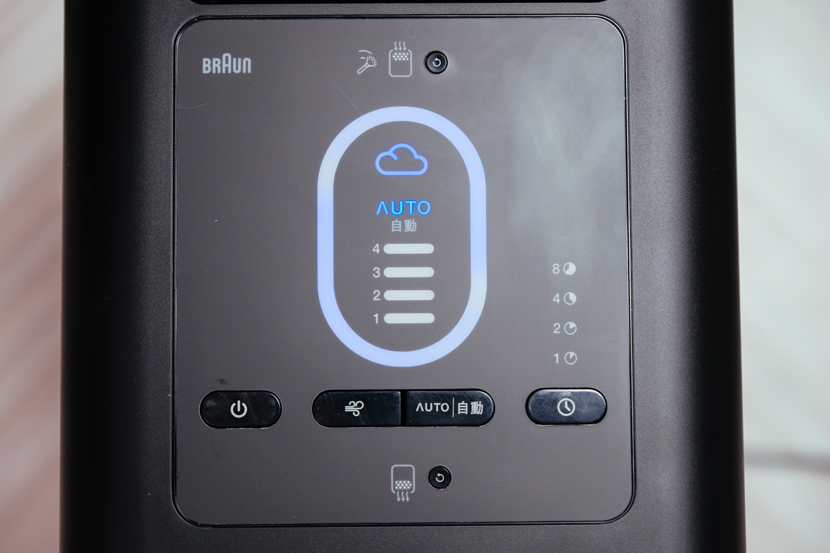 Braun 德國百靈 SensorAir 空氣清淨機的操作面板設計於上方,我們往下來一一介紹。