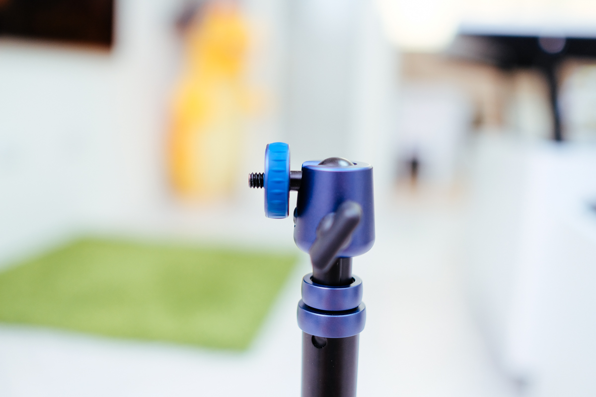 配置的雲台為了縮短收合長度及減輕重的關係,採月的不是快拆雲台,而是直接鎖上去的,但實際使用後其實還可以接受,大家在使用時,不要傻傻的拿著設備在上面轉轉轉,可以將雲台調整放鬆後,直接轉那個底座來鎖設備,2 秒可以搞定,並不比快拆慢。