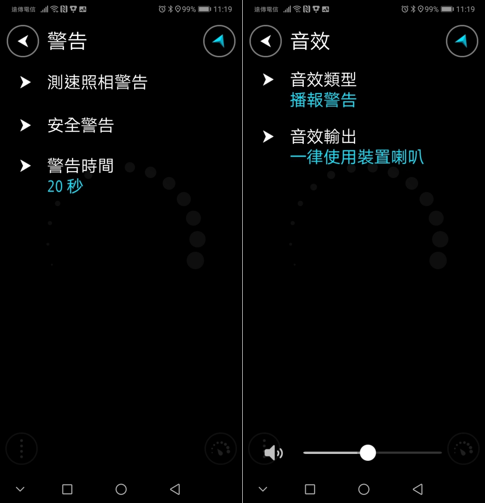 像是測速照相警告,在什麼情況下顯示,哪些情況要顯示,音效是否要用警示聲等。