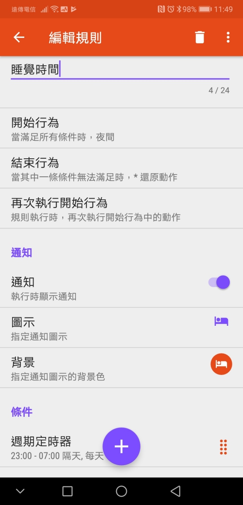 新增自動規則後輸入該規則名稱,例如睡覺時間。