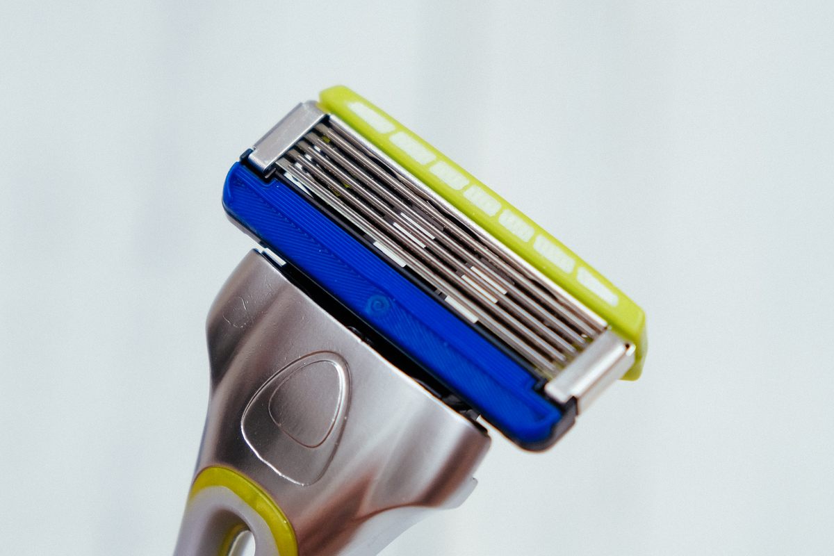不論是下巴或鼻下的部份都蠻順手的,而且那蘆薈保濕凝膠盒真的發揮了很大的作用,阿湯覺得比用一般刮鬍膏還滑順,再加上順刮鰭的作用,可以大幅減緩對肌膚的磨擦感。順便提一下這順刮鰭的安全設計,原理是讓每一片刀片旁都額外配上一條金屬細線,透過刀鋒間縫隙變密,讓刀片與皮膚的接觸點增加 2 倍、刀片排列也與肌膚更服貼 ,因此刮起來更順暢,也不會感到刺痛。刮起來也更安全。