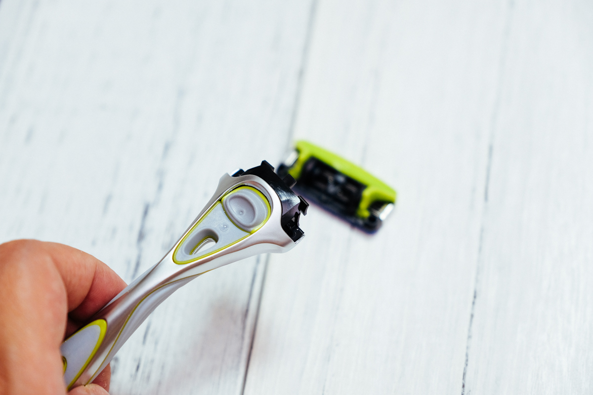 更換刀片其實很簡單,阿湯應該不用講大家就會用才是....通常一定都會好奇心大發作,拿到刮鬍刀後一定會在上面亂摸亂按,然後就會不小心發現原來在刀片附近有個按鈕,按下去後刀片就會自動脫落了。