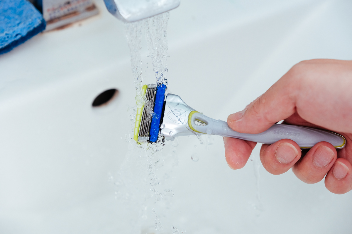 刮鬍刀的部份由於有超水洗結構,所以簡單沖洗一下就一乾二淨不殘留鬍渣。