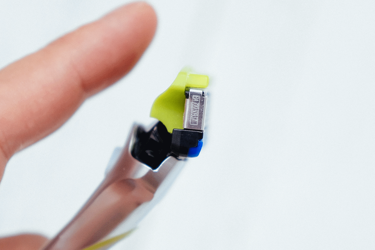 這樣就可以輕鬆的分離刀片囉,而刀片要裝上去也只要對準推進去,聽到咔一聲就可以了。