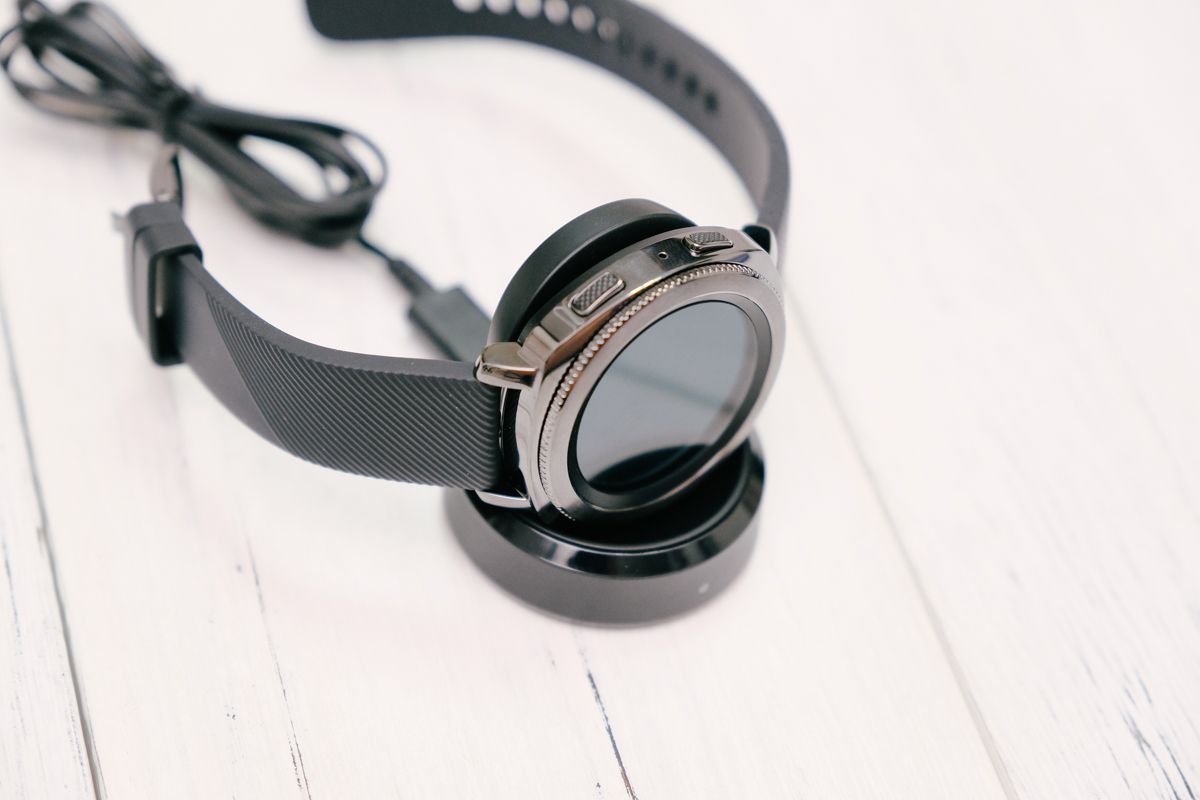 之前的智慧型手錶雖然很多都不錯用,不過充電需要接線我會覺得有點麻煩,因此 Gear Sport 採用無線的方式真的很不錯。