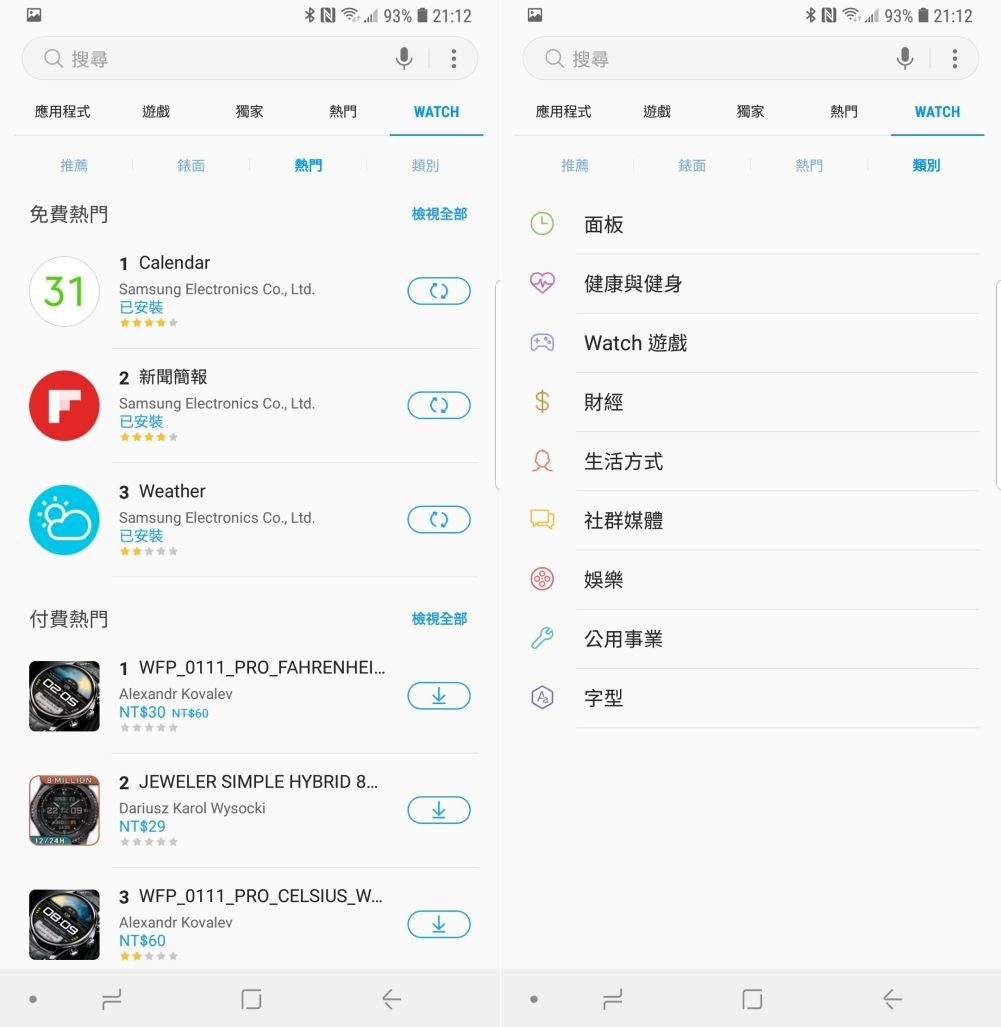 另外在 Galaxy Store 裡除了原本手機下載的各種應用程式外,其中有一區專門就是給手錶使用的應用程式、錶面等,常見的功能需求都可以透過這裡面來進行安裝擴充。