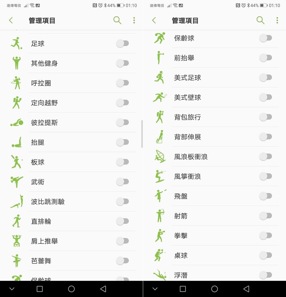 至於健身、運動的部份,基本上你常做的運動類別全部都包含在裡面了,你想用 Gear Sport 來偵測什麼運動通通都有,以阿湯自己會用到的就是步行、跑步、騎單車及游泳,像阿湯也很常打的桌球裡面也有,真的太強大,之前和朋友打桌球他的就很單純的運動手環,只能偵測移動步數而已。