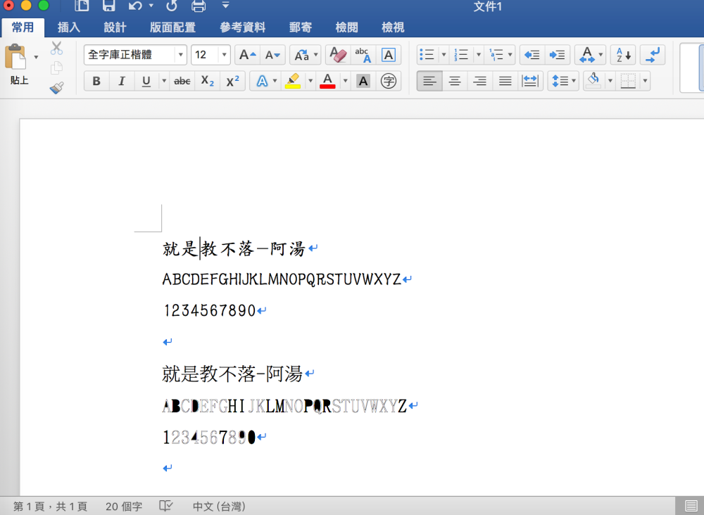 不過選了之後在字型那欄還是全顯示正確的中文名稱,真的太奇妙了,主要字型就這二種,也使用給大家看,正楷體還頗不錯看的,正宋體算適合用在影片字幕上。
