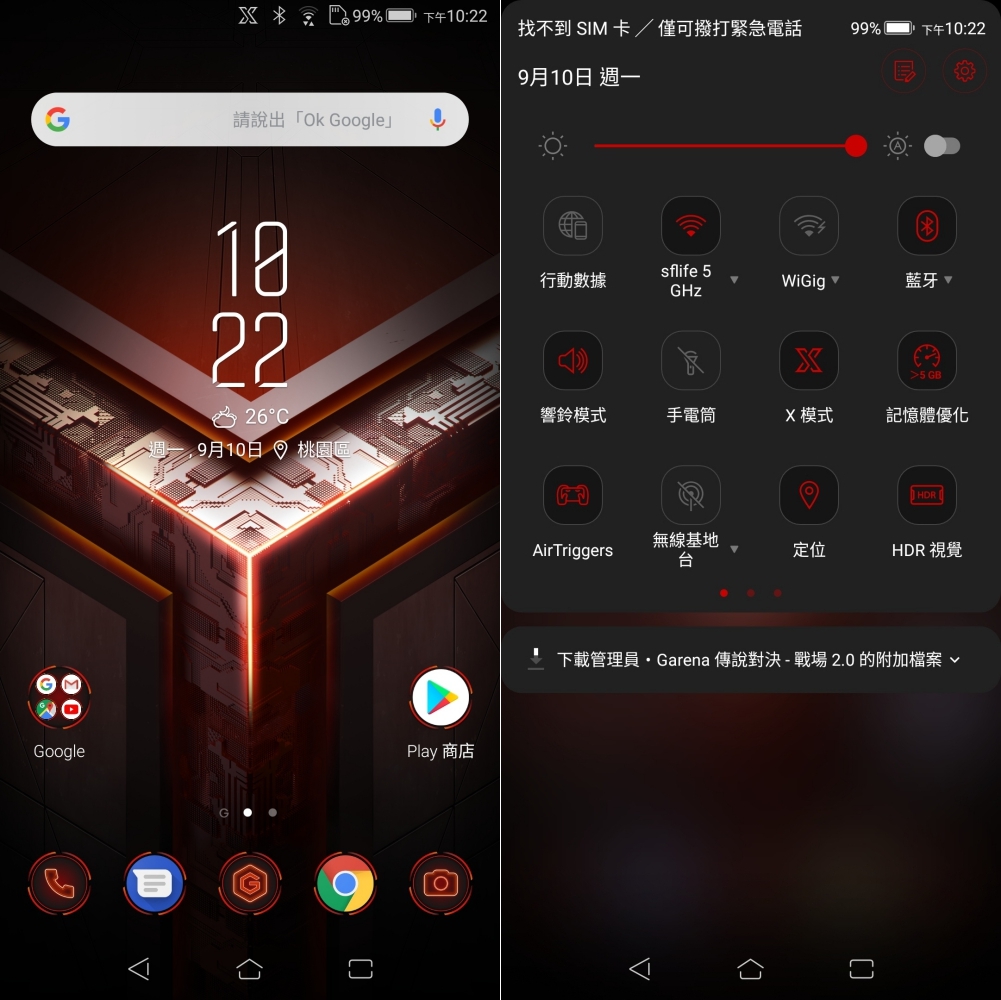 手機在開機時會有一個開機音效,並顯示 ROG 玩家共和國的 Logo,看起來就很帥。