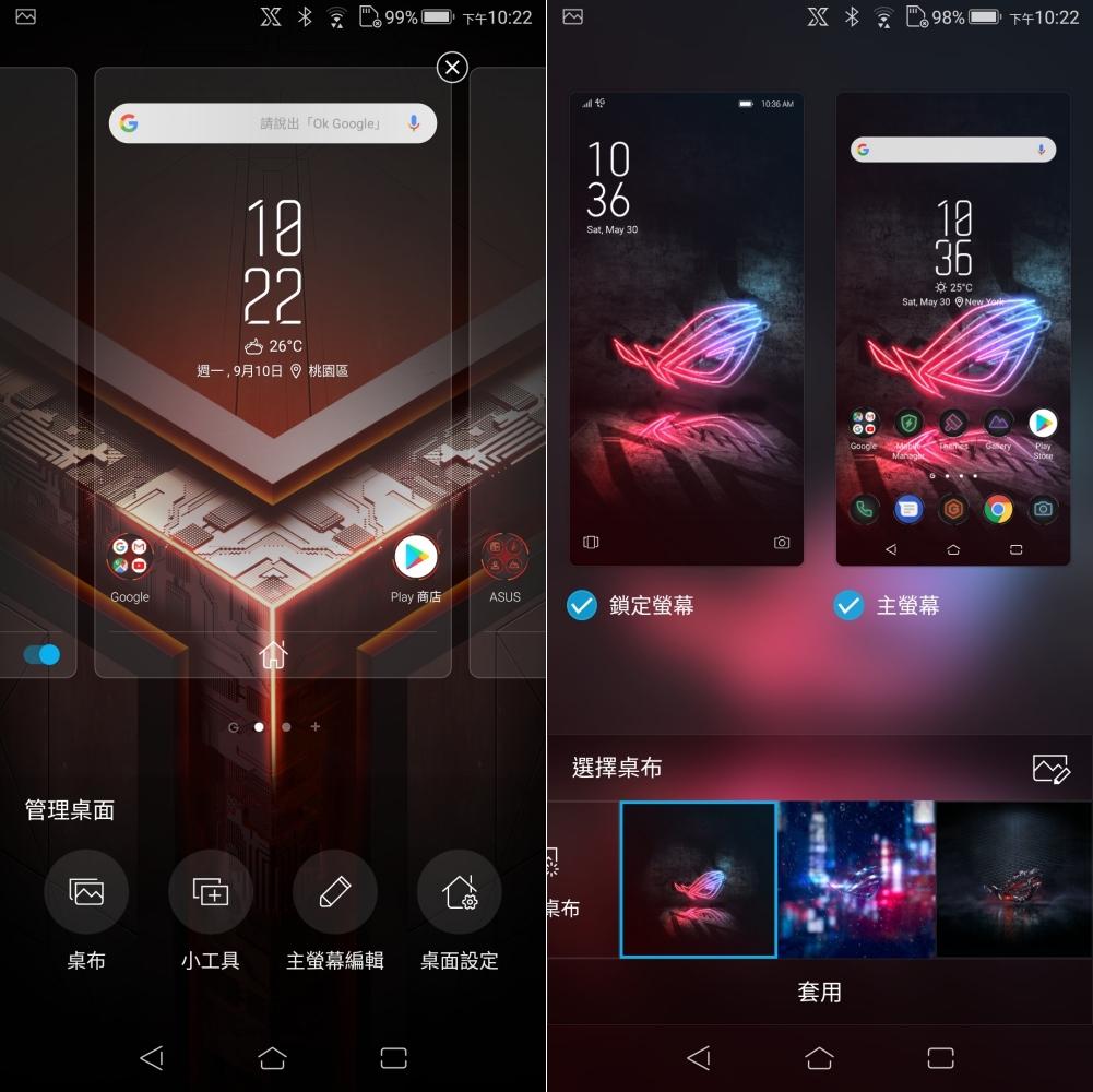 除了原本的桌布,在預設的桌布裡,還有一些 ROG Logo 的桌布可以更換。